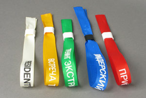• Тканевые браслеты на руку. Изделия премиум-сегмента производятся из атласа и репса, для защиты от передачи третьим лицам оснащены одноразовыми надежными застежками. Браслеты тканевые обладают более презентабельным и стильным внешним видом, что позволяет повысить статус проводимого мероприятия.
